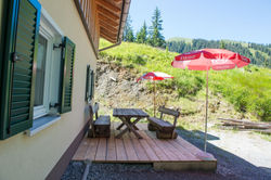 The house has 4 bedrooms, 1 living/dining area with integrated kitchen, 1 bathroom with WC upstairs, 1 bathroom, 1 separate toilet and a room with ski boot and shoe dryer. Deck chairs, umbrellas and a "Weber" barbeque are at your disposal.